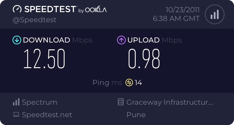 Actual as tested by: www.speedtest.net